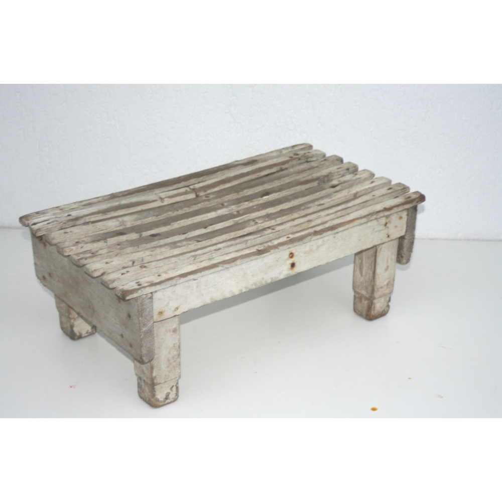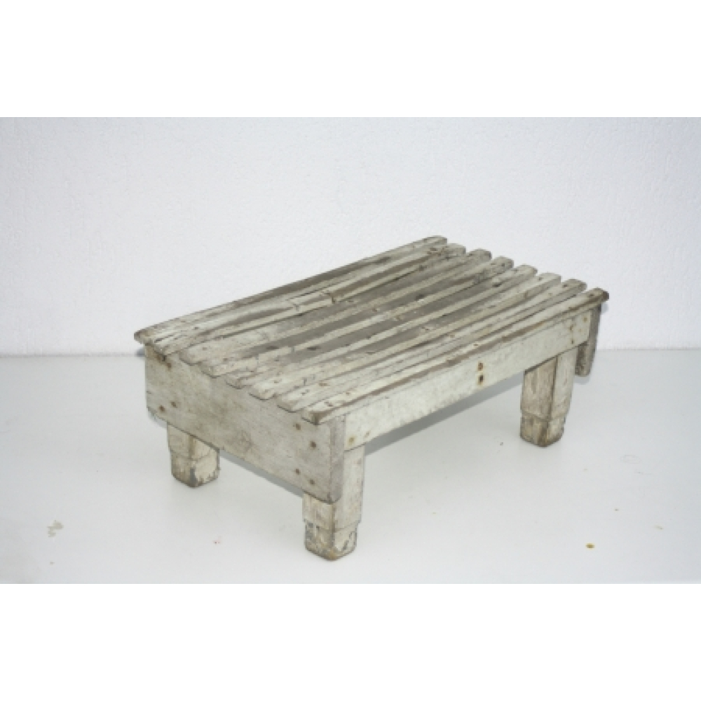 Krukje nr 3. Mooi vintage houten krukje, met een verweerde uitstraling. Dit krukje heeft jarenlang dienst gedaan als opstapje in een circus, en dat verhaal maakt het krukje nog nèt wat leuker!