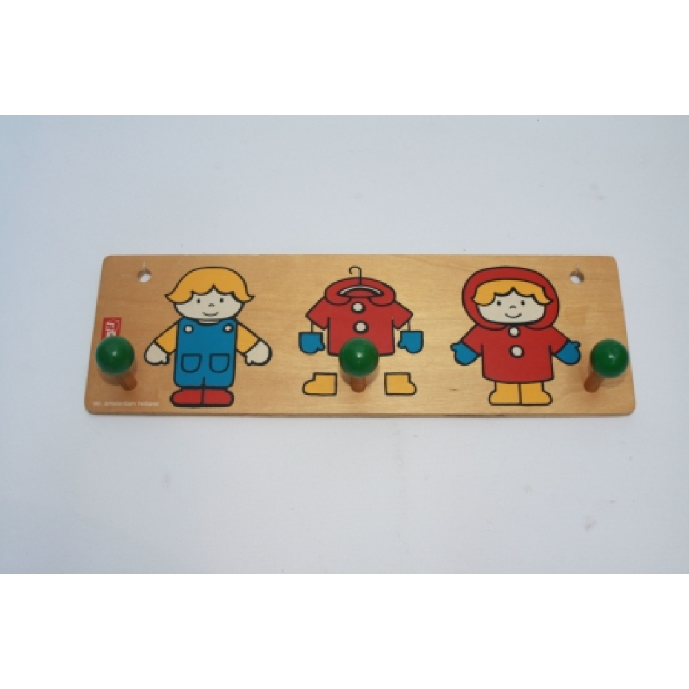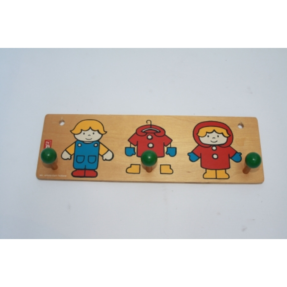 Lief SIO Amsterdam kapstokje uit de 70's nr 9. Mooi vintage kapstokje van hout met groene knopjes en tekeningen in een Dick Bruna stijl. Dit kapstokje is natuurlijk leuk op de kinderkamer, maar ook mooi in de keuken of speelhoek! De afmetingen van dit kapstokje zijn