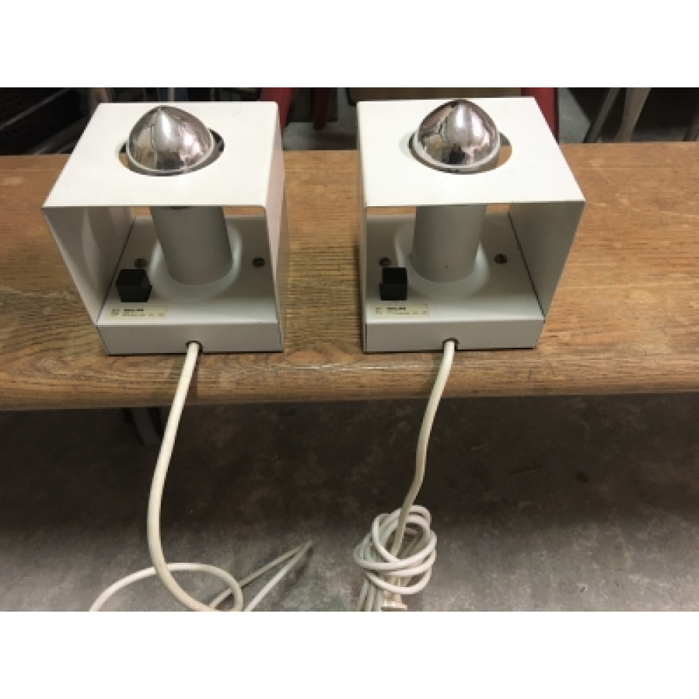Philips vintage design wandspotjes. Twee prachtige design Philips wandspotjes, in goede staat, en met een prachtige strakke vormgeving. Met een drukschakelaar in de voet, en natuurlijk voorzien van een kopspiegellamp. Prijs voor de set, en alleen per set van twee verkrijgbaar!