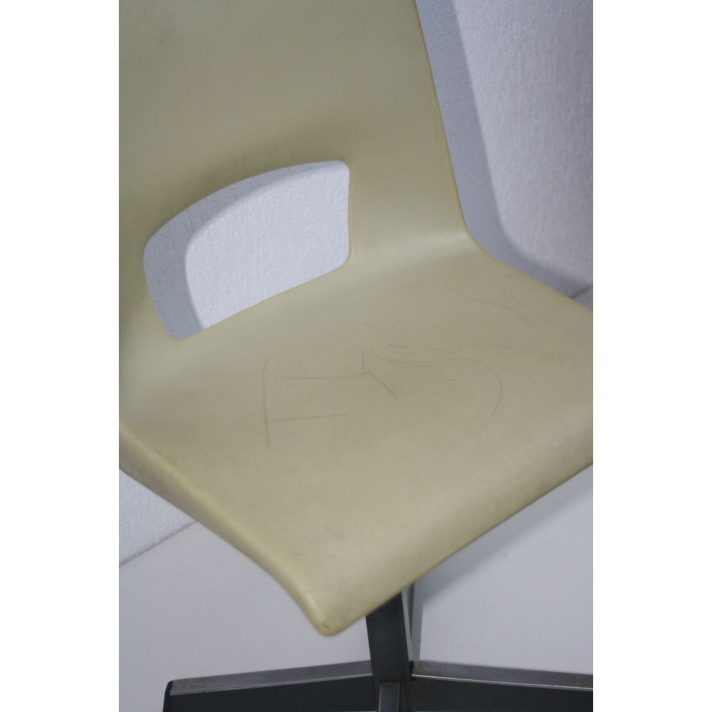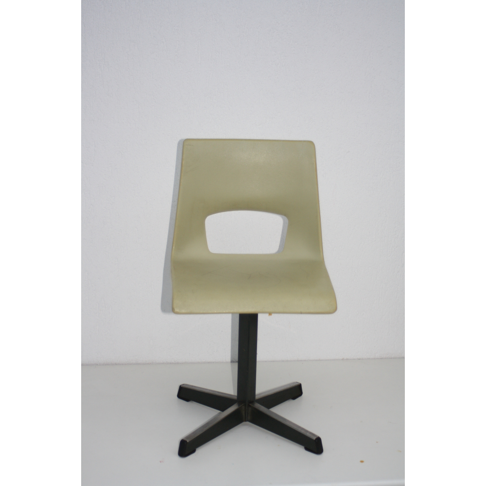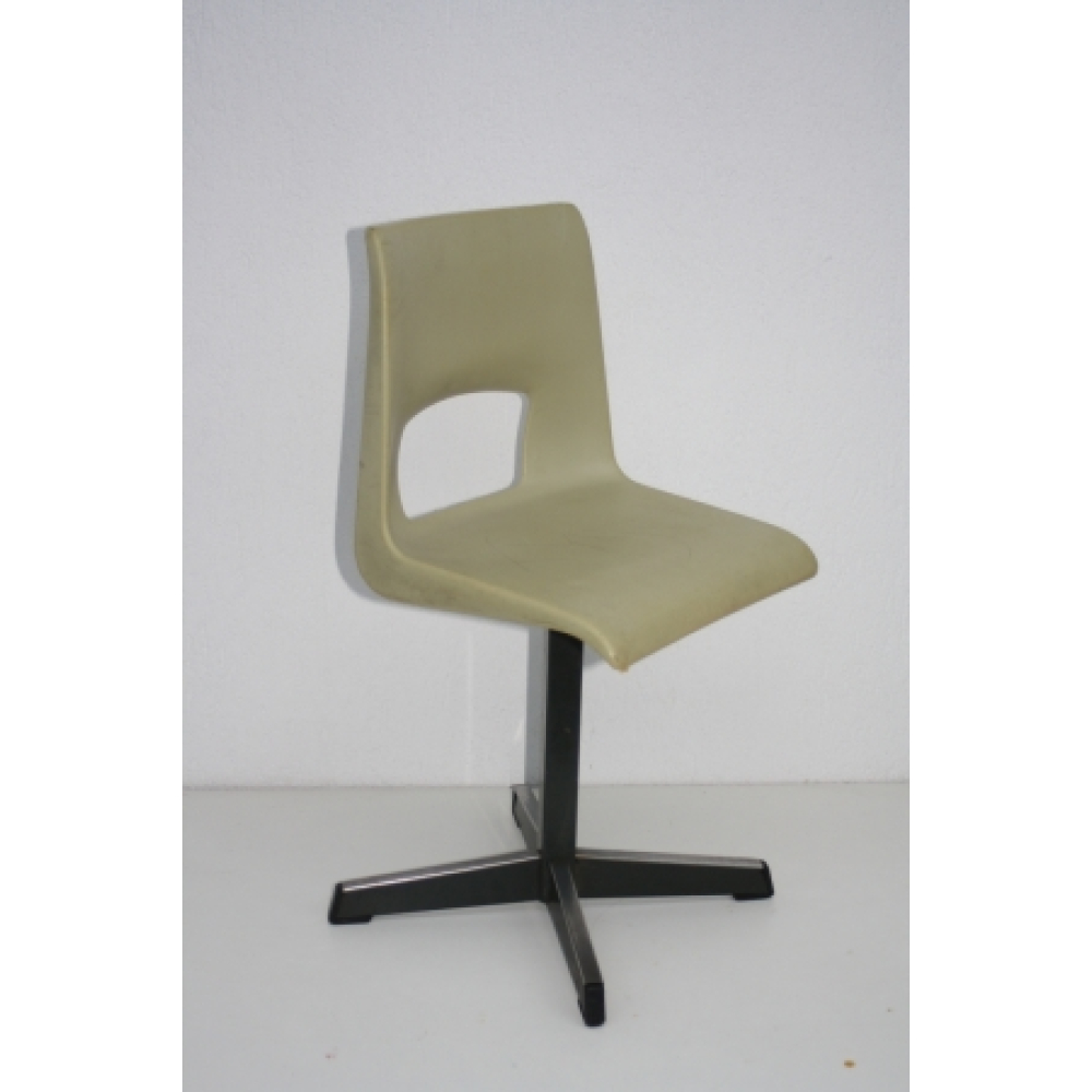 Schoolstoeltje nr 2. Stoer jaren 70 schoolstoeltje, met een kunststof kuipje en een stalen poot. Mooi, stevig en onverslijtbaar!