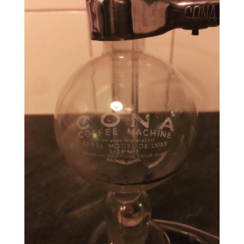 Vintage Cona coffee maker. Mooi stijlvol koffieapparaat uit de 50s/60's, met kolven, een houder, een brander, helemaal compleet en klaar voor een nieuwe ronde! Helemaal van glas en nogal kwetsbaar, dus alleen af te halen bij de Droomfabriek! Nog even een korte uitleg over de werking:
