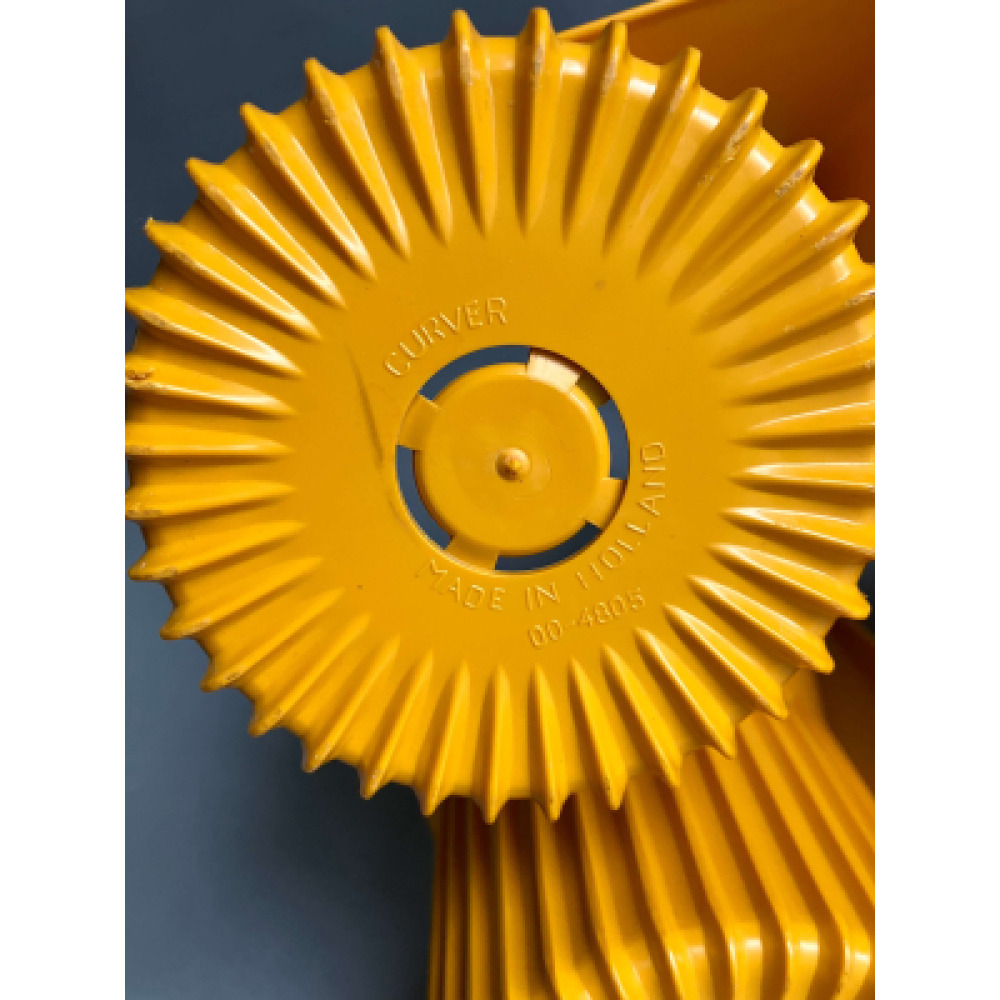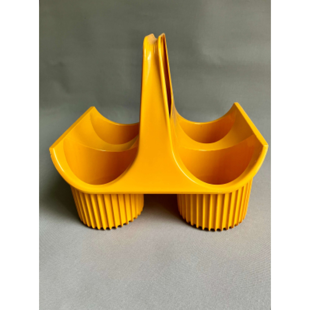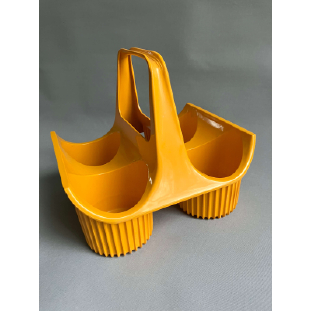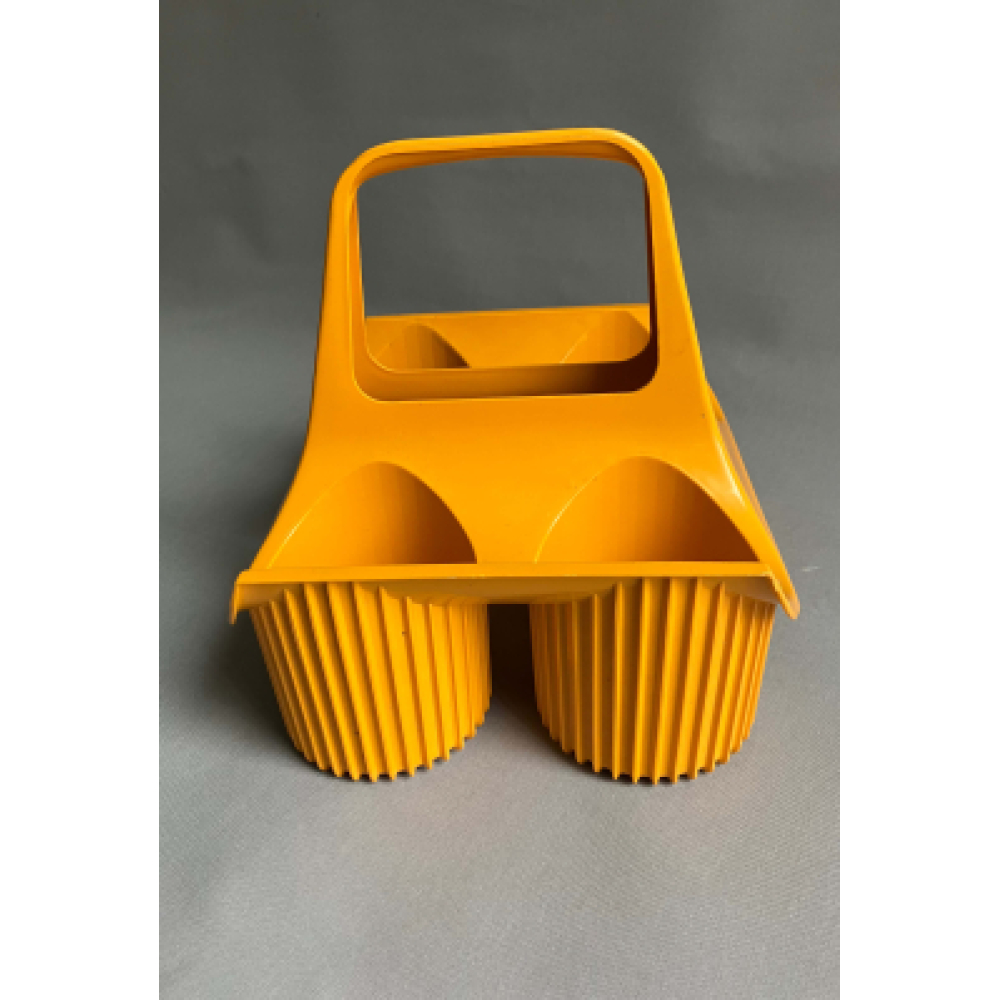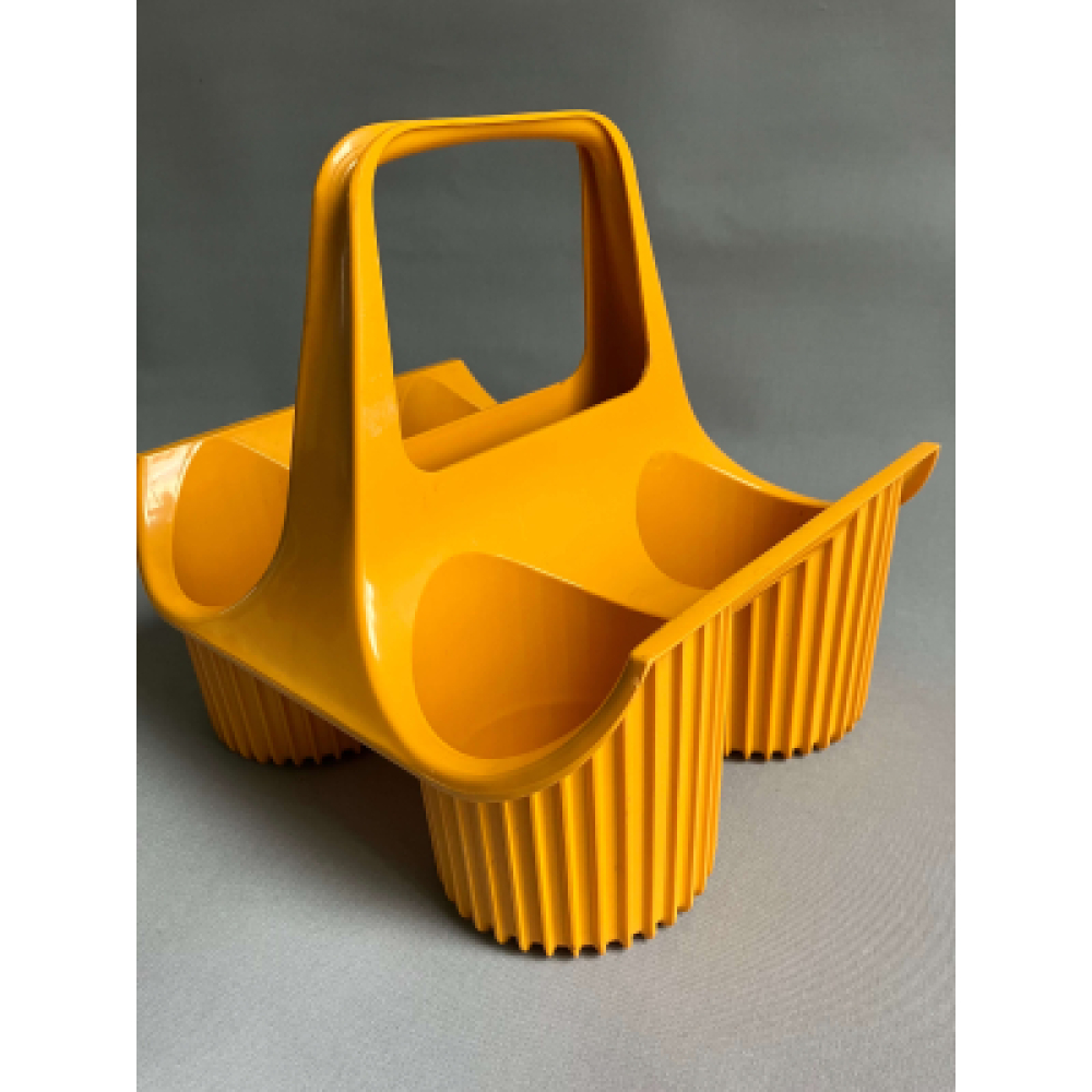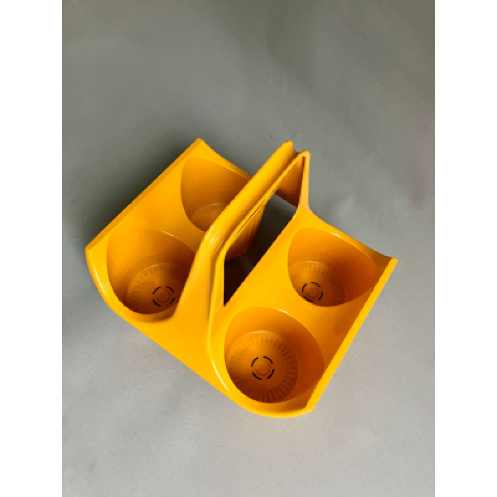 Vintage Curver flessendrager. Deze vintage flessendrager van kunststof heeft een prachtige vorm en uitstraling, met precies de goede seventies kleur. Natuurlijk nog uitstekend te gebruiken, maar ook mooi als accessoire naast de bank voor tijdschrijften of iets dergelijks.