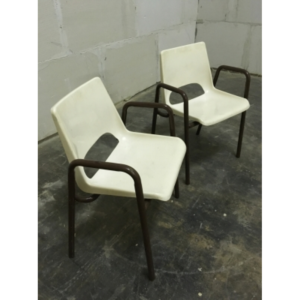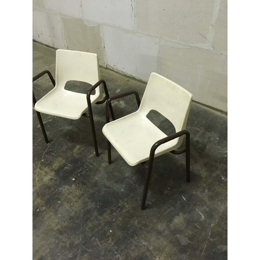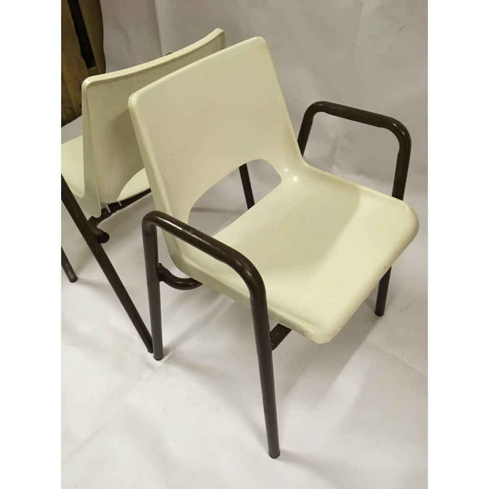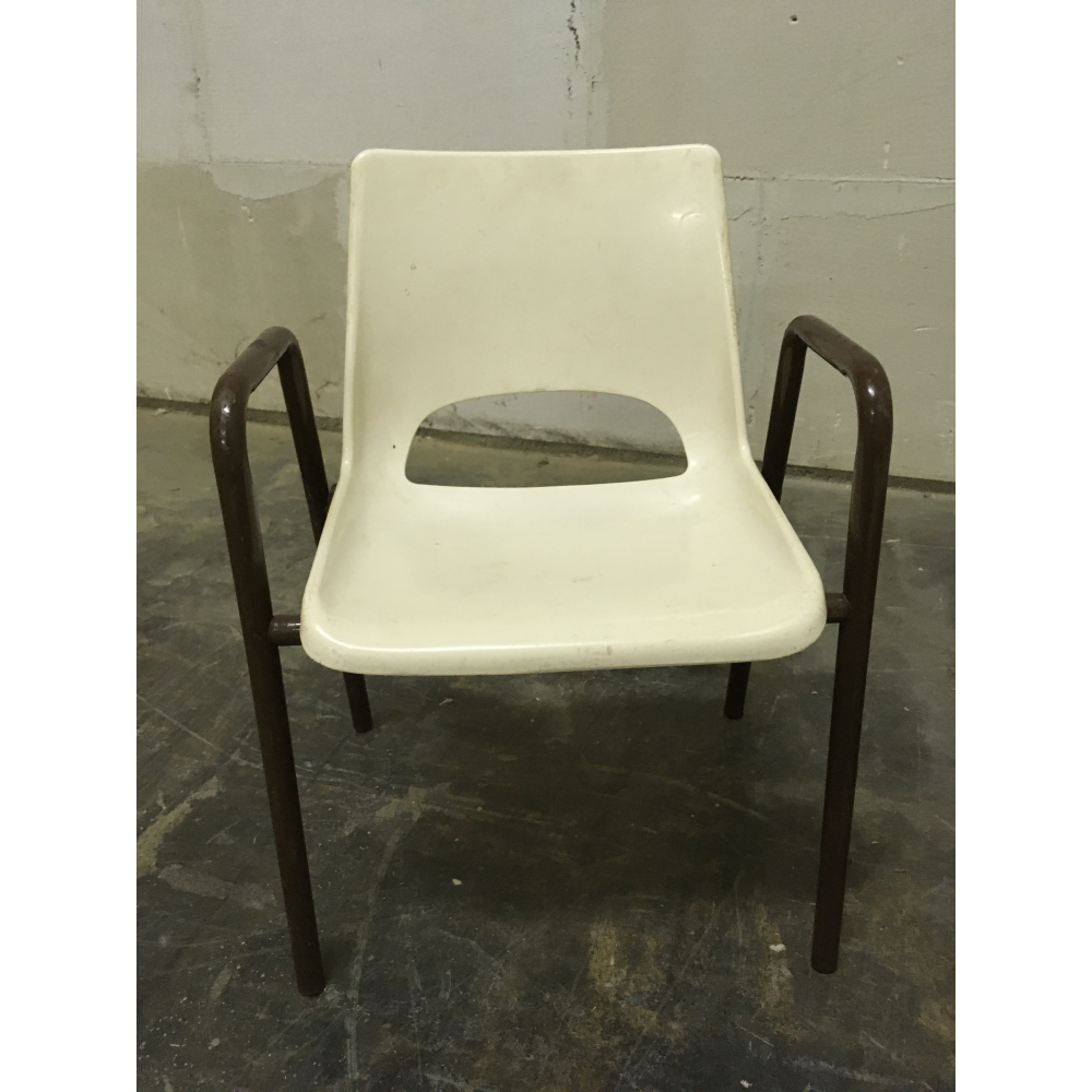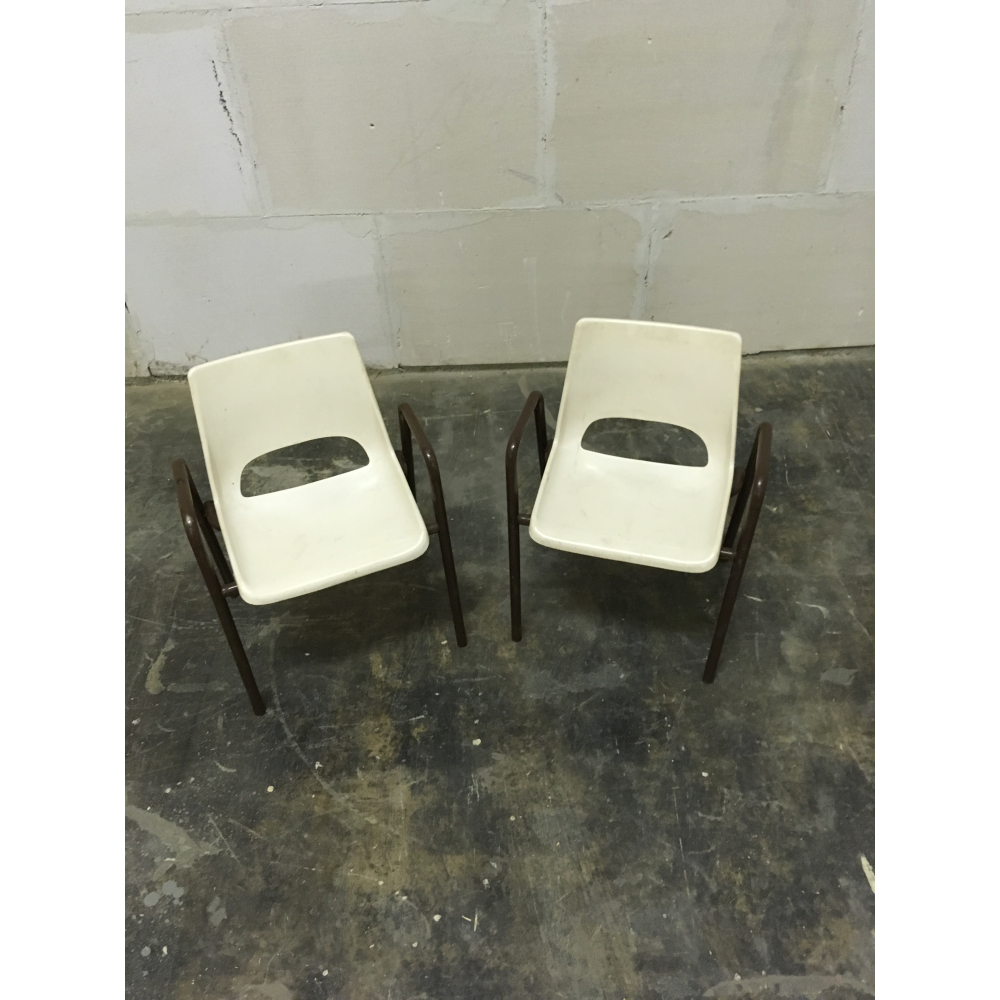 Vintage design schoolstoeltje nr 26. Prachtige vintage design schoolstoeltjes uit de jaren 70. Dit model bestaat uit een plastic kuipje gemonteerd op een ijzeren frame, oersterk en een aanwinst voor elke huiskamer of kinderkamer. Natuurlijk ook mooi te combineren met een tafeltje! Prijs per stuk, nog één exemplaar verkrijgbaar.