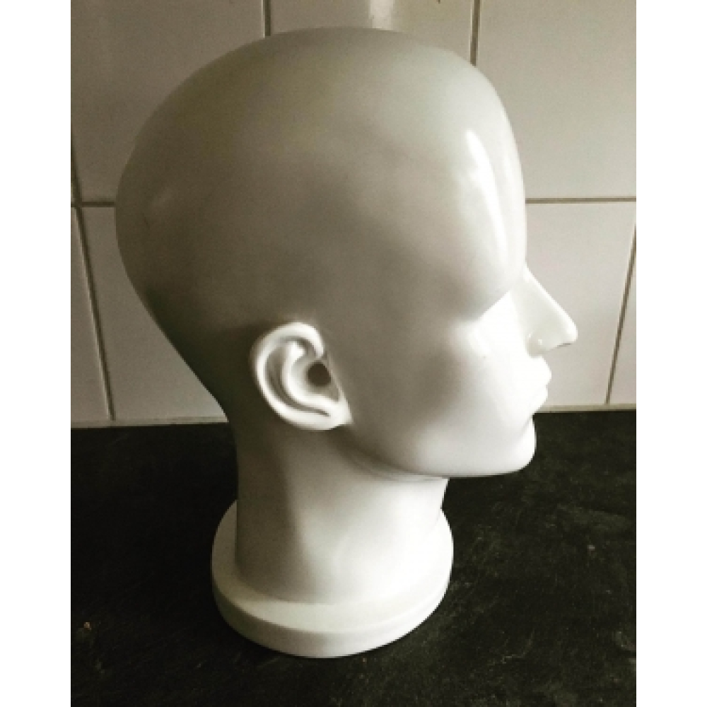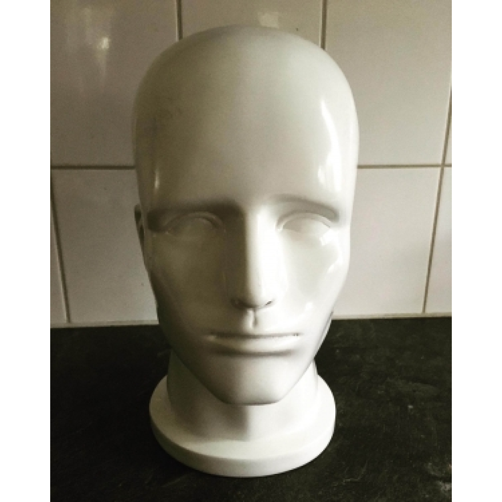 Vintage hoofd voor koptelefoon. Dit keramieken hoofd uit de jaren 70 is mooi, stijlvol en in goede staat. Natuurlijk ideaal voor je koptelefoon, maar ook voor je zonnebril of pet! Van oorsprong werden dit soort glazen hoofden uitgegeven bij de grote koptelefoons die destijds werden verkocht voor de stereo-apparatuur in de jaren '70. Ze zijn in diverse kleuren uitgegeven en zijn nog steeds erg decoratief. Dit hoofd is net iets groter dan de gemiddelde maat (hoogte 32 cm) met een mooie vorm en uitdrukking. Prijs per stuk.