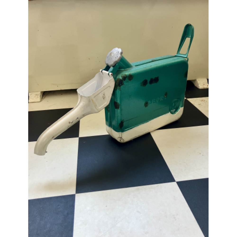 Vintage metalen Fabory jerrycan uit de jaren 60! Deze metalen jerrycan heeft een prachtig patina, is helemaal origineel en werkt goed! Natuurlijk met schenktuit die tevens dienst doet als handvat, en die schenktuit is ook nog voorzien van een filtertje om verontreiniging te voorkomen. Deze jerrycan is natuurlijk een mooie accessoire bij je oldtimer of natuurlijk als pronkstuk in je mancave!