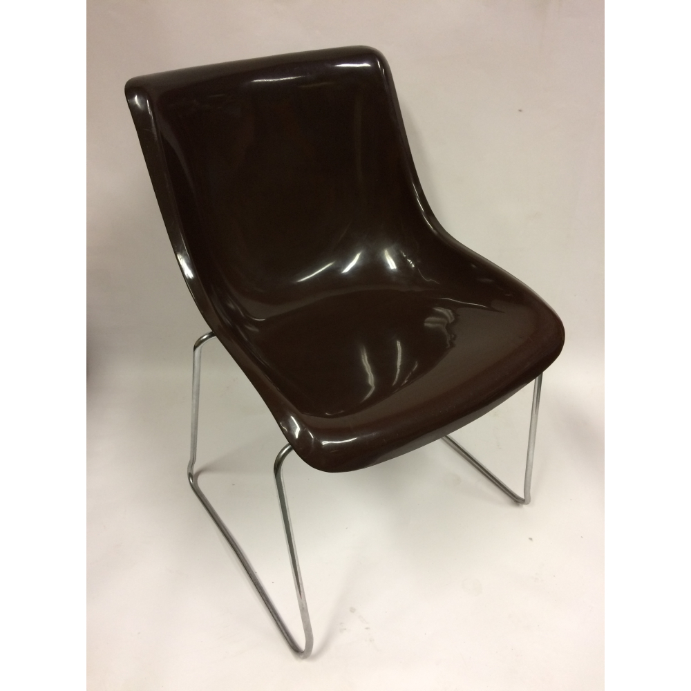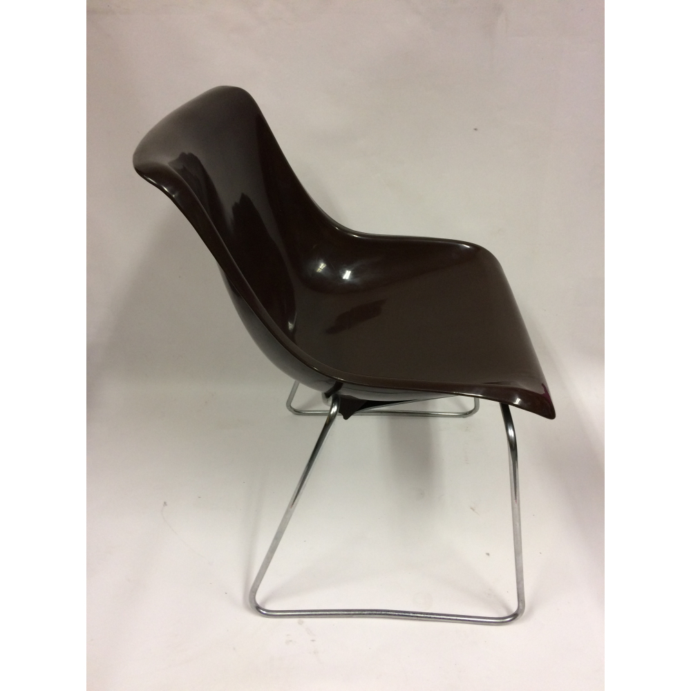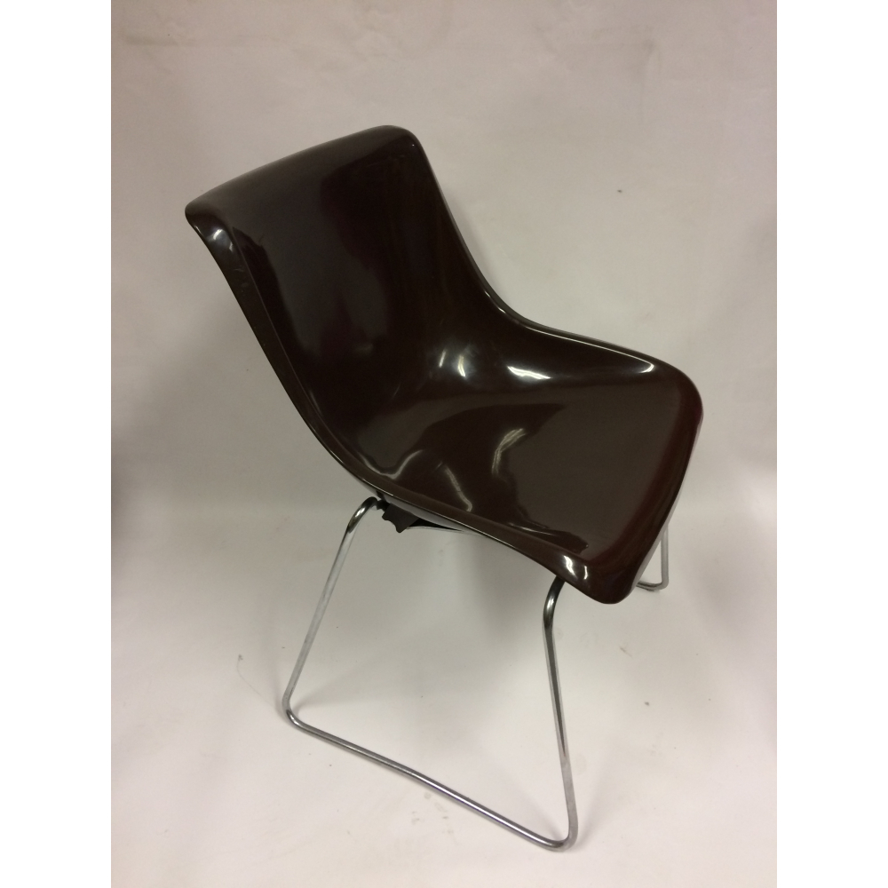 Vintage space-age kuipstoelen nr 137. Vintage eetkamerstoelen, bestaande uit een chocoladebruine kunststof kuip en een ijzeren frame. Deze stoelen hebben een prachtig design en een mooie vorm, en zijn klaar voor een nieuw leven. Vintage design uit de space-age! Prijs per stuk.