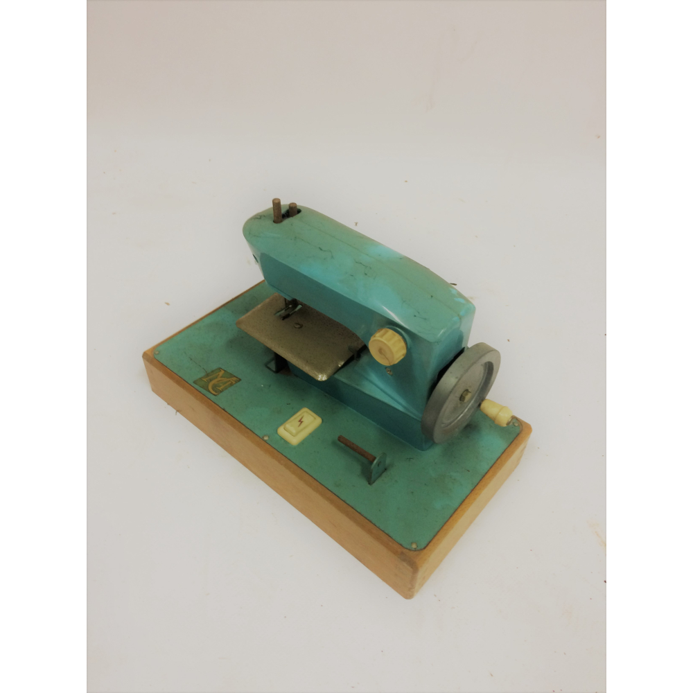 Vintage speelgoed naaimachine. Deze speelgoed naaimachine heeft jaren onder het stof op een zolder staan wachten tot hij weer tot leven gewekt zou worden! Helamaal origineel, in werkende staat, met een prachtige kleur maar met 50 jaar stof!