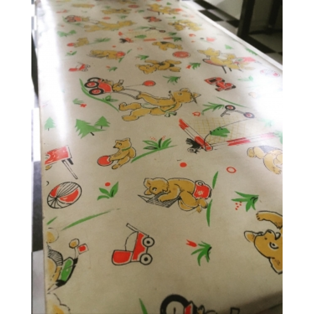 Vintage wit kinderbankje nr 19. Mooi vintage houten klepbankje voor kinderen, oersterk en klaar voor een nieuwe ronde! Dit bankje heeft een mooie vorm, is bekleed met een prachtig en kleurrijk vintage berenprintje en onder de zitting is ruimte voor alle speelgoed! De lengte van dit kinderbankje is 70 cm, de hoogte is totaal 60 cm en de zithoogte is 33 cm.