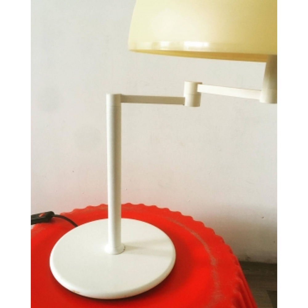 Vintage design mushroom lamp van HALA Zeist. Deze grote schemerlamp (hoogte 62 cm!) is een sieraad voor elke huiskamer met een prachtige uitstraling. Gemaakt door Hala in Zeist in de jaren 70, in een combinatie van kunststof en metaal. Door de zware metalen voet staat hij erg stevig, de wokkel in de voet zorgt er voor dat hij makkelijk zwenkt en de grote (kunststof) kap geeft een prachtige sfeer. In uitstekende vintage conditie en klaar om weer een nieuwe huiskamer te laten shinen! Door de kwetsbaarheid en gewicht is hij alleen af te halen bij de Droomfabriek.